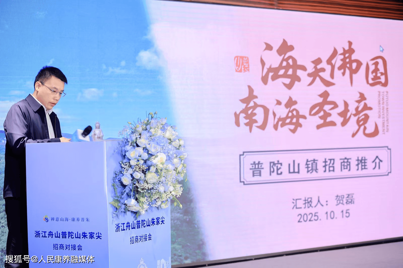 推介环节,各相关单位负责人先后登台,从区域概况、投资环境、产业规划,到具体项目,全方位展示普陀山朱家尖的投资价值。