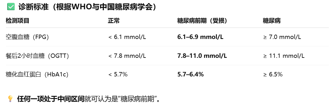 糖尿病前期(Prediabetes)指的是血糖已经高于正常,但还没达到糖尿病诊断标准的阶段。它是2型糖尿病的高危信号,也是最容易干预逆转的阶段。