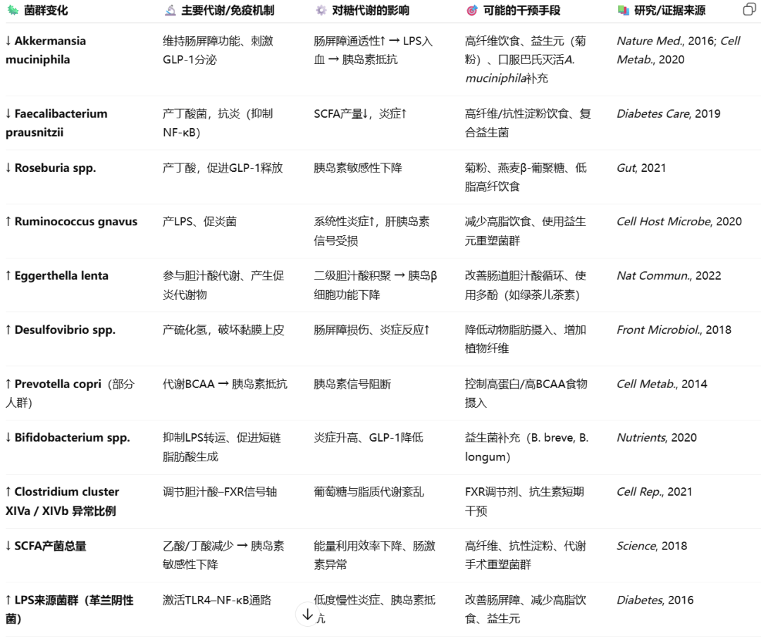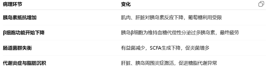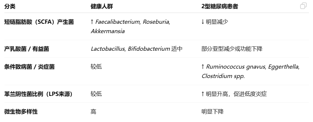 糖尿病患者的肠道呈现“炎症型菌群结构”,短链脂肪酸生成不足、内毒素负荷上升、能量吸收过高。
