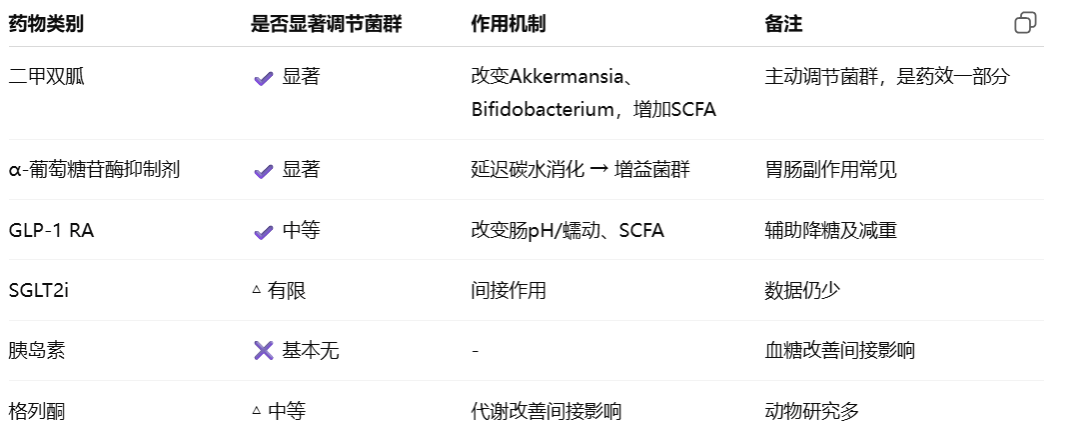 实际上,除了二甲双胍,其他降糖药比如α-葡萄糖苷酶抑制剂(如阿卡波糖)也能调节菌群。