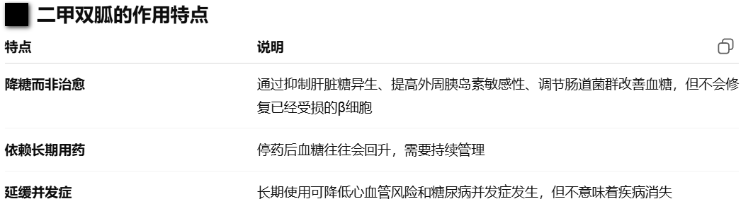 不过二甲双胍并不能治愈糖尿病,而是控制血糖和降低并发症风险的长期管理工具。