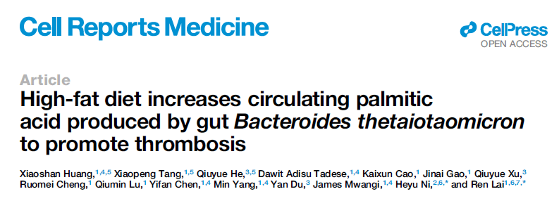 研究发现,高脂饮食会促进肠道中多形拟杆菌增殖,并促进其产生棕榈酸,较高的棕榈酸水平会抑制人体内抗凝血蛋白,从而增加血栓形成风险,最终可能引发心血管疾病。