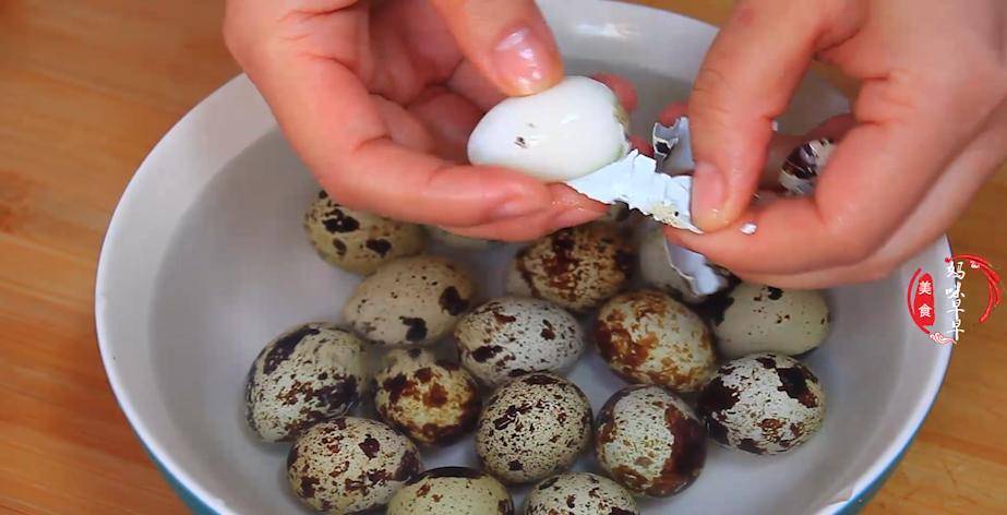 2,鹌鹑蛋在小锅里煮熟,然后捞出后放入清水中过凉,这样容易剥皮。