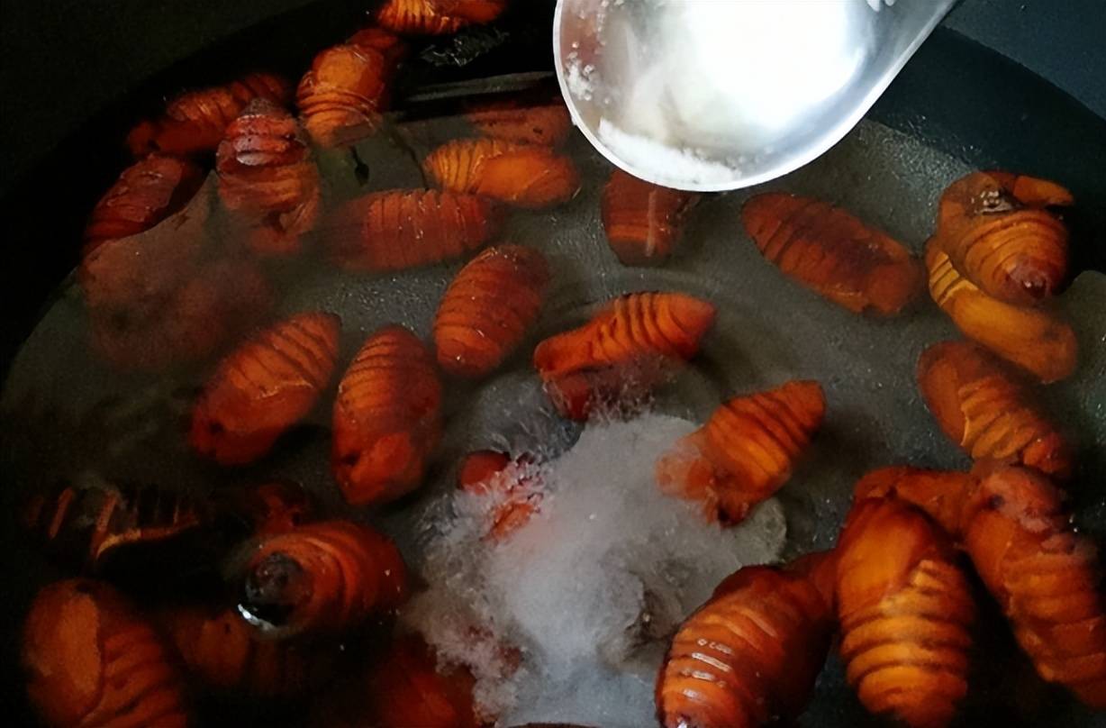 2、锅里烧水,水开加点盐,然后放入蚕蛹,这样能去腥还能增加底味,注意火别大,5分钟即可捞出。
