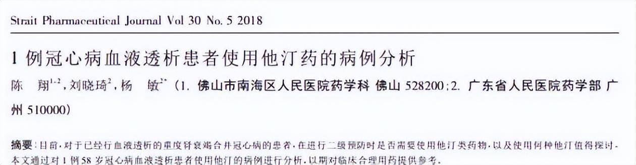 [1]陈翔,刘晓琦,杨敏.1例冠心病血液透析患者使用他汀药的病例分析[J].海峡药学,2018,30(05):271-273.