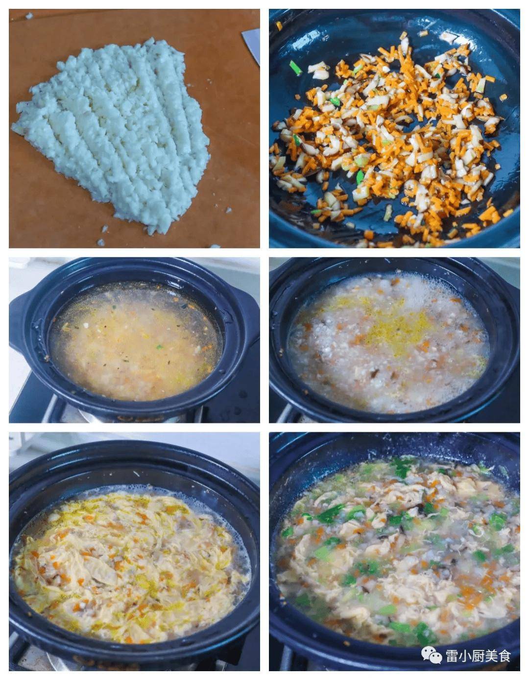 2、锅里油热,先炒香小葱,再倒入胡萝卜碎,香菇碎,翻炒几下。