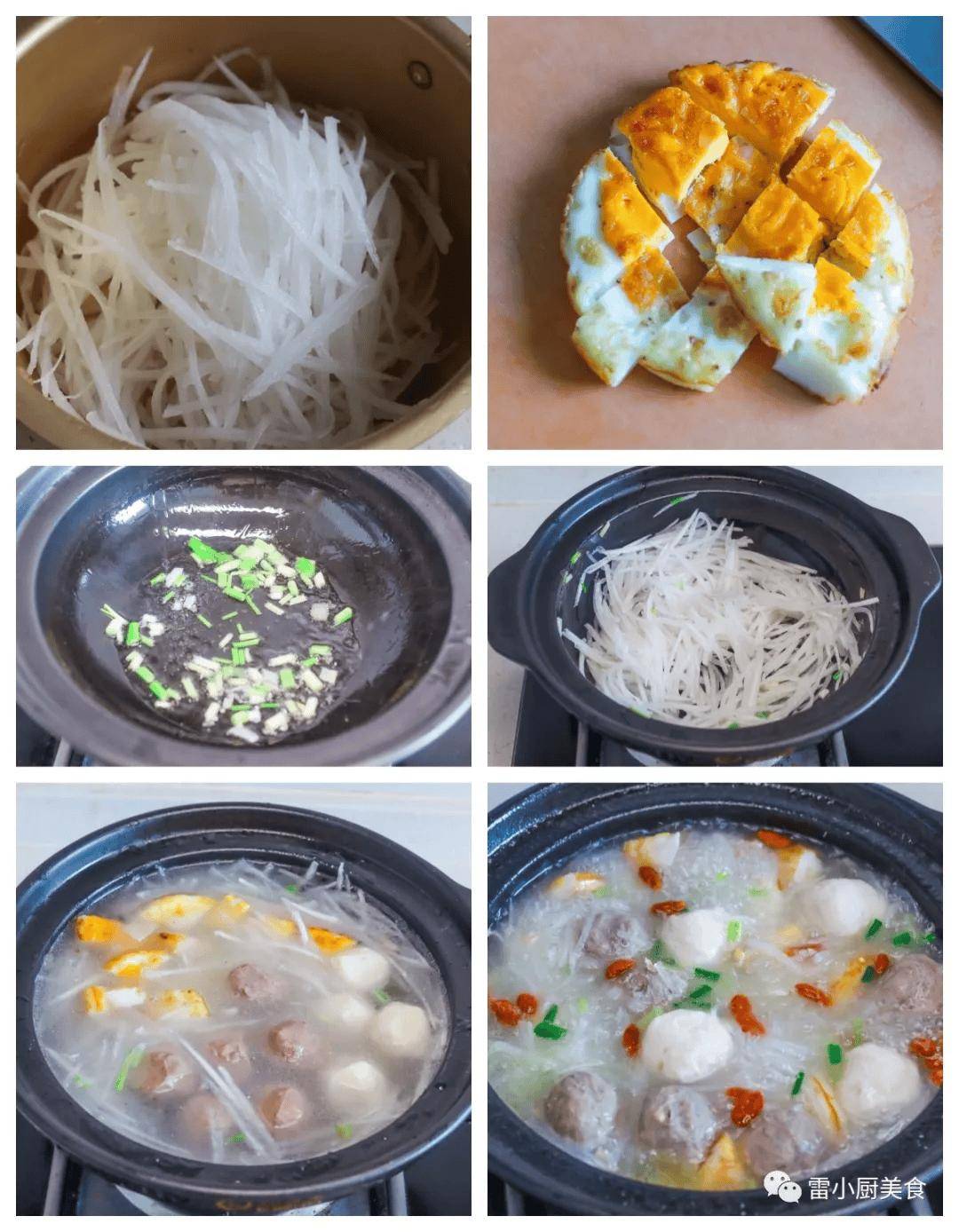 食材:白萝卜,丸子,鸡蛋,小葱,枸杞,白胡椒粉,食盐,食用油,