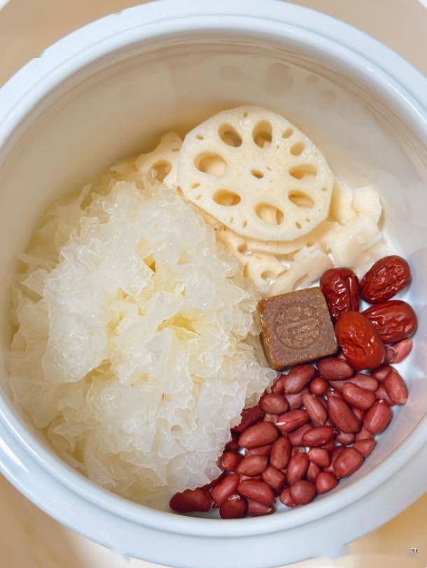 4.莲藕银耳花生甜汤:滋阴益气血健脾胃