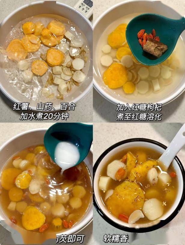 3.红薯百合山药羹:滋润温养脾胃