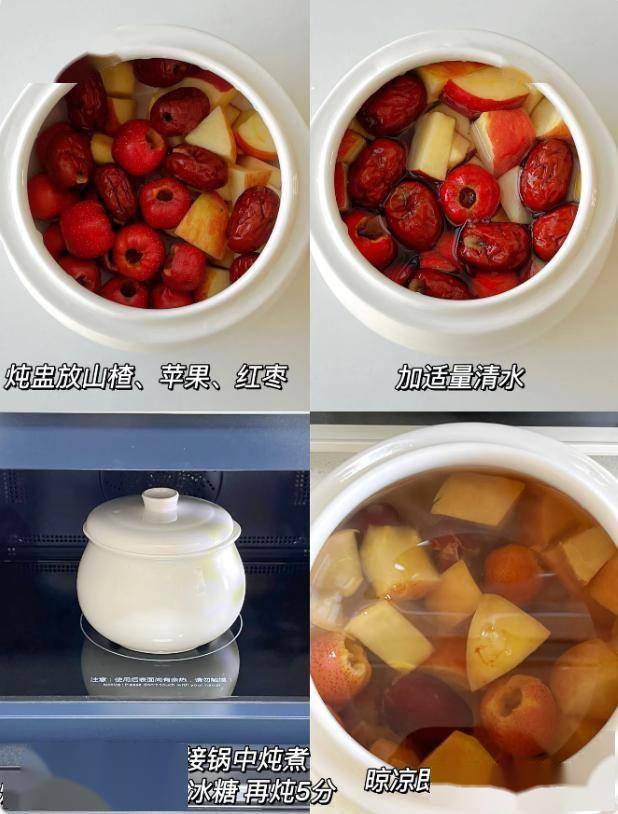 材料:适量山楂,适量苹果,适量红枣,适量冰糖。
