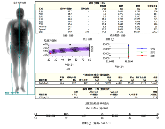 张爱鸣主任医师提醒,减重前请先做一个全面评估,了解自己的体脂率,内脏脂肪含量及基础代谢率。