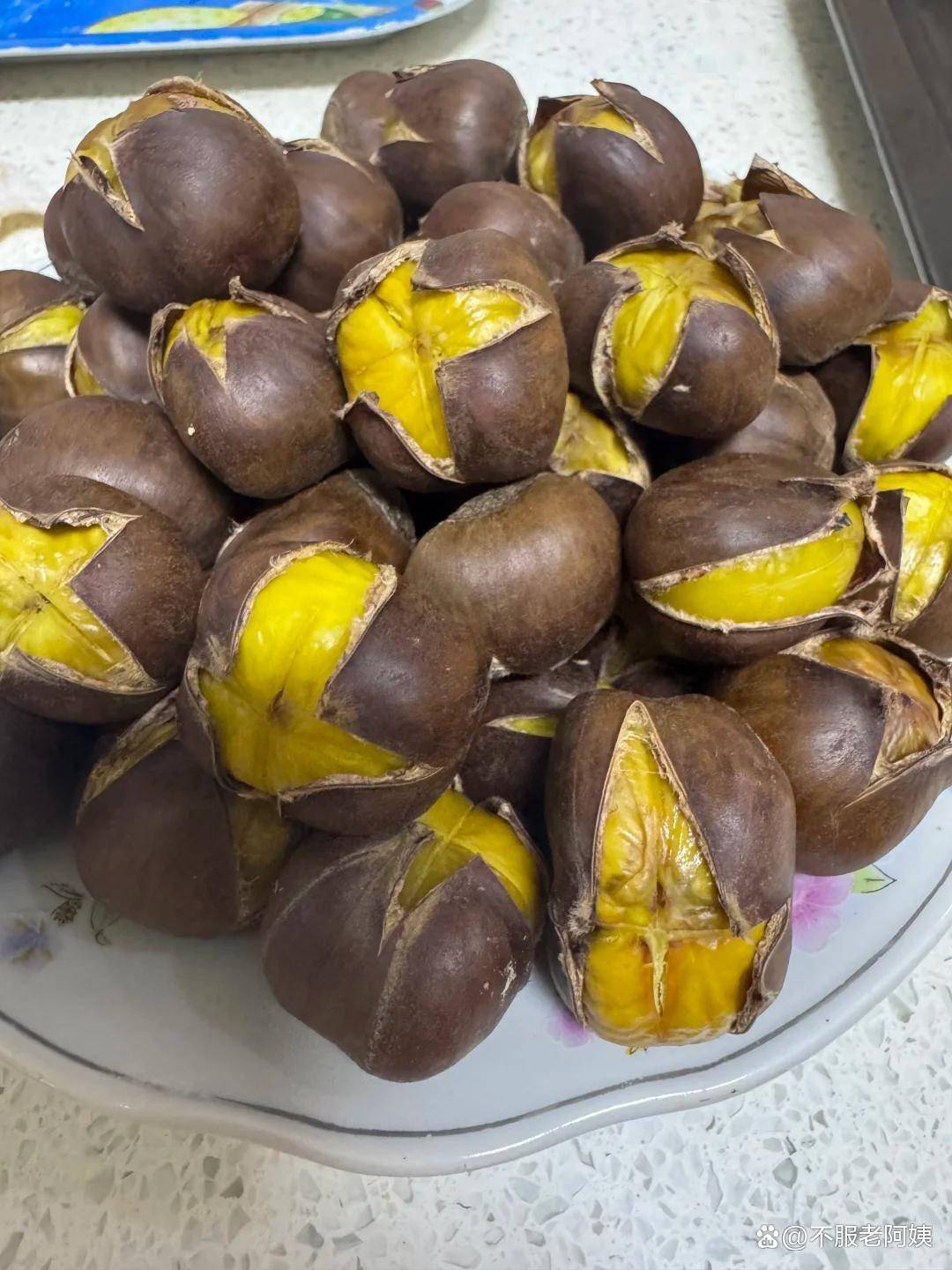 小窍门:生板栗划个十字口,煮5分钟就很好剥皮。别买太亮的,可能是加工过的。