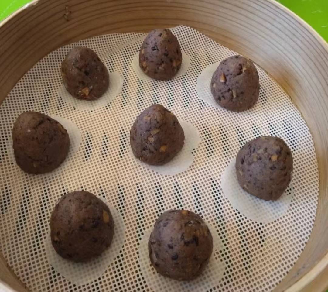 4、十五分钟后,将其分成小份,逐一搓匀,整理成窝头的造型,放到蒸屉上。等待其进一步发酵,体积膨胀后,大火蒸二十分钟,时间稍微久一些,以确保粗粮熟透。