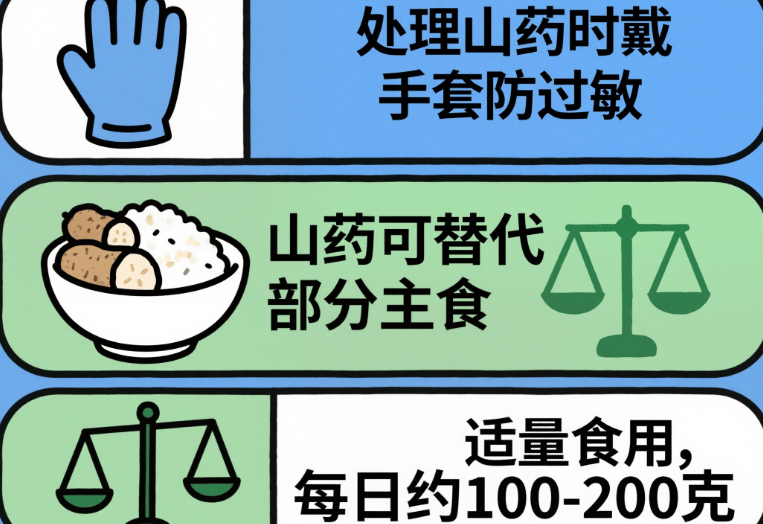 对于 那些过敏体质的人儿,在处理山药的时候,它那黏液,有可能会让皮肤痒痒的,要是你是过敏体质,那最好就戴上手套来处理哈。