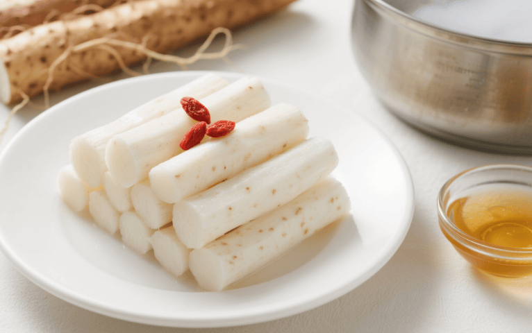 铁棍山药2根、枸杞少许、蜂蜜或白糖适量