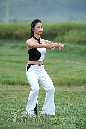 3.手:手指自然舒张,中间仿佛有一个气球,两手要小心翼翼地捧着它、抱着它,两臂圆撑,和身体环抱成半圆形,手的位置开始时可以放低一点,以后再慢慢上升,但两手高不过肩,低不过脐。