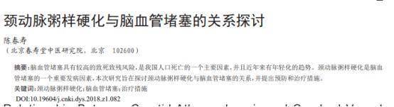 [1]陈春寿.颈动脉粥样硬化与脑血管堵塞的关系探讨[J].大医生,2018