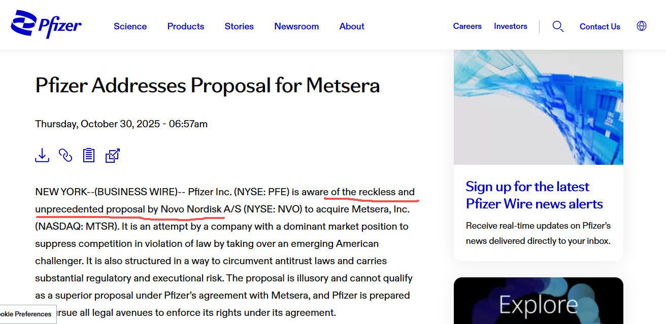 Metsera也表示,该公司已经给了辉瑞四天时间提高报价。诺和诺德给的价格很高,所以辉瑞的观点不合理。