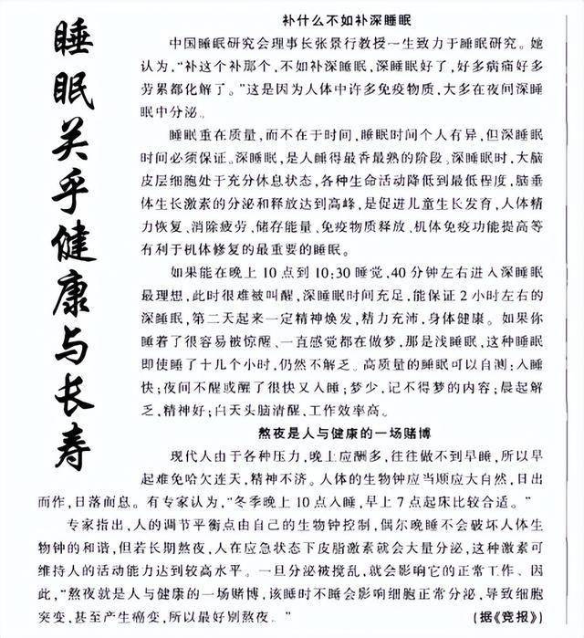 这个时间段,人体的内分泌系统和免疫系统都会进入活跃状态,身体的修复工作更为高效。很多老年人可能还不知道,睡得过早。