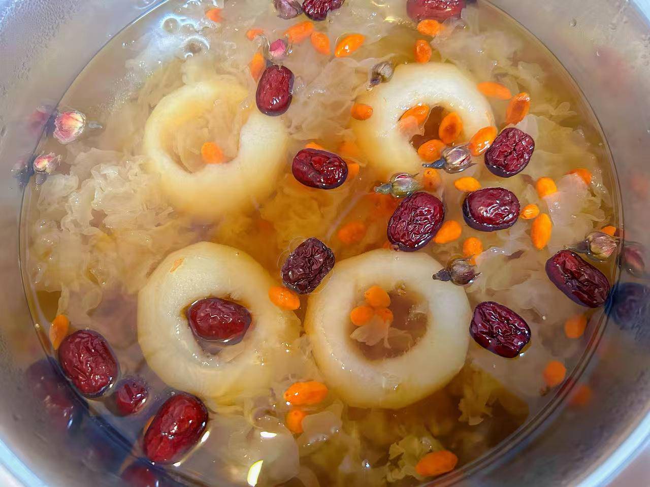 2、再搭配些其他的食材,银耳泡好,枣子和枸杞洗干净。