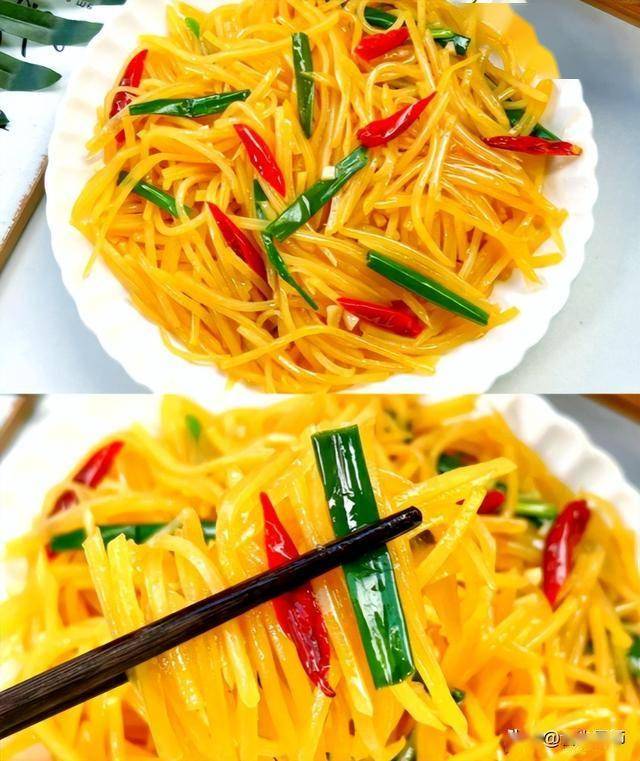 (2) 焯水时间不宜过长,否则土豆丝会变软,失去爽脆口感。