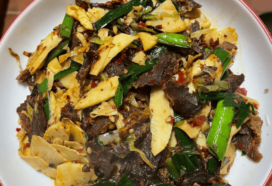 冬日限定的山野之味。脆嫩冬笋,遇上农家熏制的醇香腊牛肉,猛火快炒,镬气十足。笋片吸收了腊肉的咸香,依然保持清甜爽脆,是下饭佐酒的绝佳菜肴。