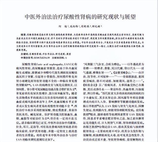 [1]何 俊,中医外治法治疗尿酸性肾病的研究现状与展望,2024-07-02