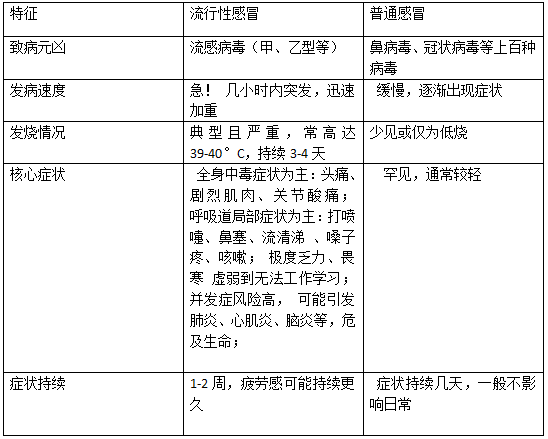 流感 ≠ 普通感冒:一张图看懂区别