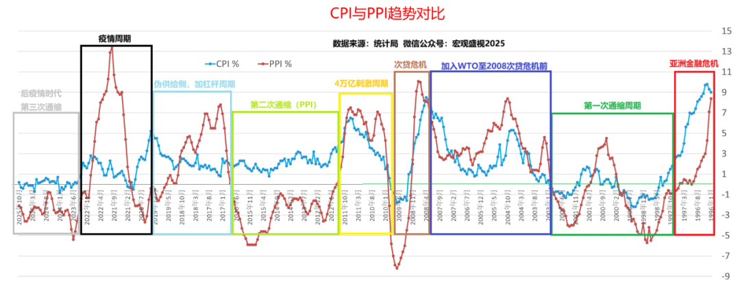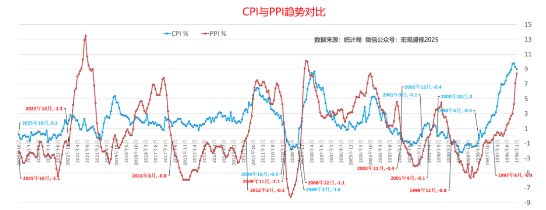 受煤炭等上游资源价格推涨的驱动,从2025年7月份开始,PPI开始出现同比降幅收窄的趋势( 如下图) 。2025年7月份PPI同比 增幅-3.6%,8月份 同比 增幅-2.9%,9月 同比 增幅-2.3%,10月份 则进一步收窄,至同比 增幅-2.1%。
