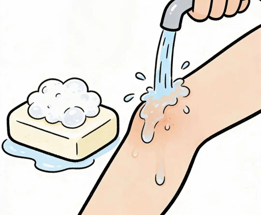 · 清洗:用肥皂和清水清洗伤口。