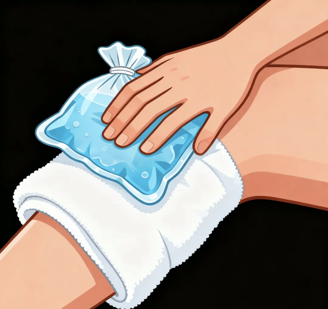· I(冰敷):用毛巾包裹冰袋,冷敷伤处15-20分钟,每隔2-3小时一次。切忌热敷。