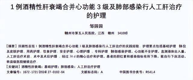 [1]邹园园.1例酒精性肝衰竭合并心功能3级及肺部感染行人工肝治疗的护理,基层医学论坛,2024-09-23