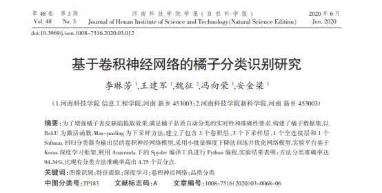 [1]李琳芳,基于卷积神经网络的橘子分类识别研究,2020-06-29