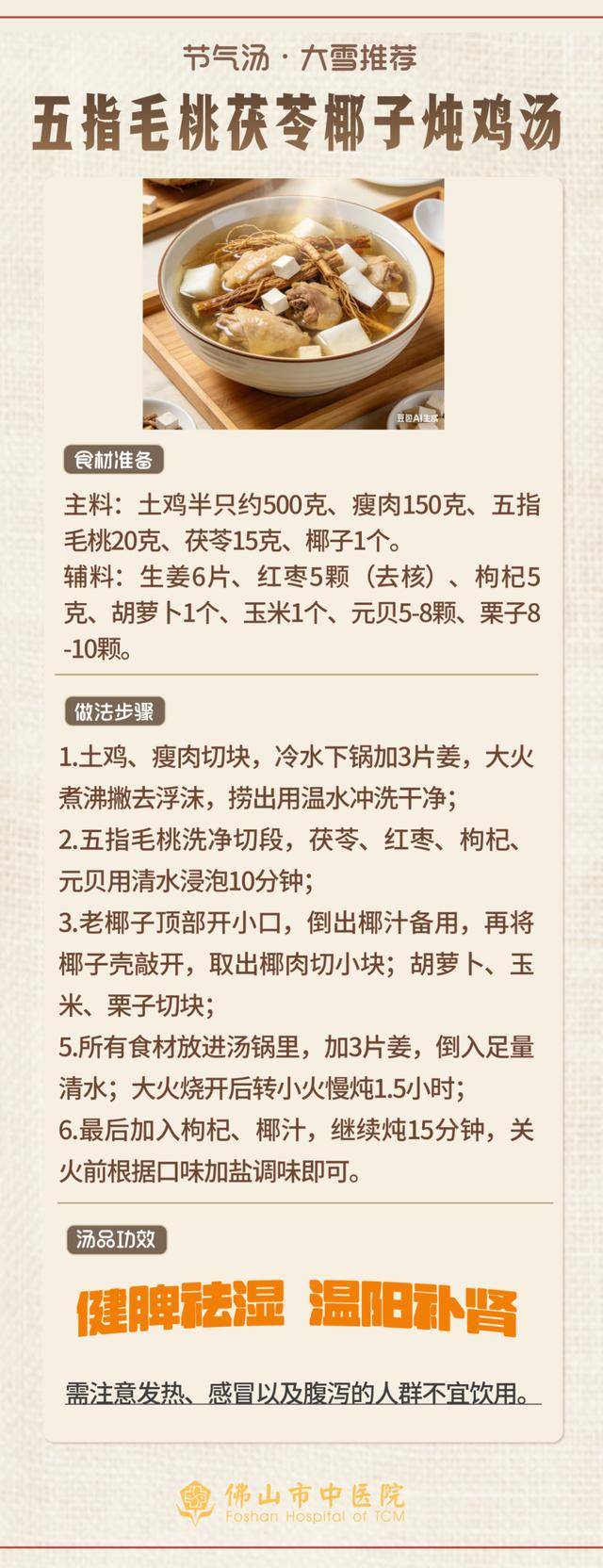 五指毛桃素有“南芪”之称,能健脾补气、祛湿活络;茯苓可利水渗湿;鸡肉能温中健脾;搭配清甜的椰子肉,此汤品不仅补而不燥,还非常适合广东湿冷气候和本地人体质,是大雪时节居家滋补的最佳选择。
