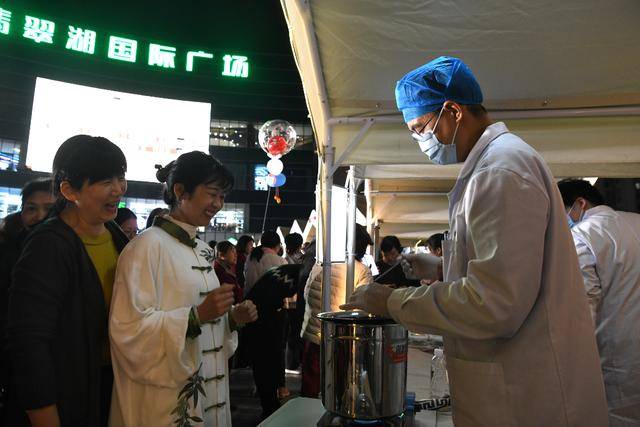 “人参乌鸡汤温补又不燥热,喝下去从胃里暖到全身,舒服极了!”市民王女士在“药膳、茶饮品尝区” 一边享用,一边连声称赞。众多市民循着诱人香气而来,大家一边品尝,一边听专家讲解汤饮里的养生门道,在升腾的热气中,亲身感受着中医“药食同源”的古老智慧。