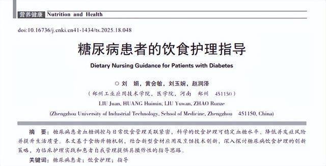 糖尿病患者的饮食护理指导,刘娟,现代食品,2025-09-28