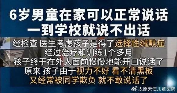 当他们走出家庭,面对陌生的社交环境时,会对 “说话交流” 产生强烈的恐惧,进而用缄默来逃避。