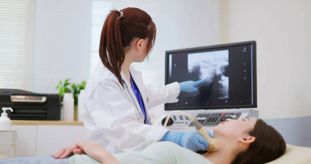 首先,超声的某些征象有助于鉴别甲状腺结节的良恶性,并预测恶性风险,超声下可疑恶性的指标包括实性、低回声、边缘不规则、垂直位生长及微钙化等。医生会根据甲状腺结节的可疑恶性指标进行计分,再结合结节大小评估是否需要进一步行超声引导下甲状腺细针穿刺活检(FNA)。FNA是甲状腺结节良恶性鉴别首选的病理诊断方法。