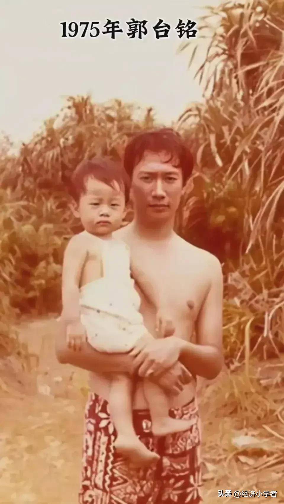 第二张照片拍摄于1975年,郭台铭当时25岁,和儿子郭守正一起到郊外游玩。照片中的郭台铭看起来有些青涩,头发稍显凌乱,但依然能够看出年轻时的他英俊潇洒。