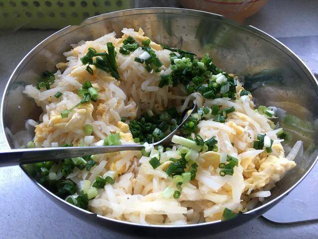 做法:萝卜丝拌入鸡蛋液,加面粉适量做成饼。