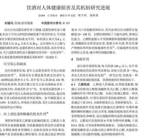 [1]胡宁利.饮酒对人体健康损害及其机制研究进展[J].人民军医,2007