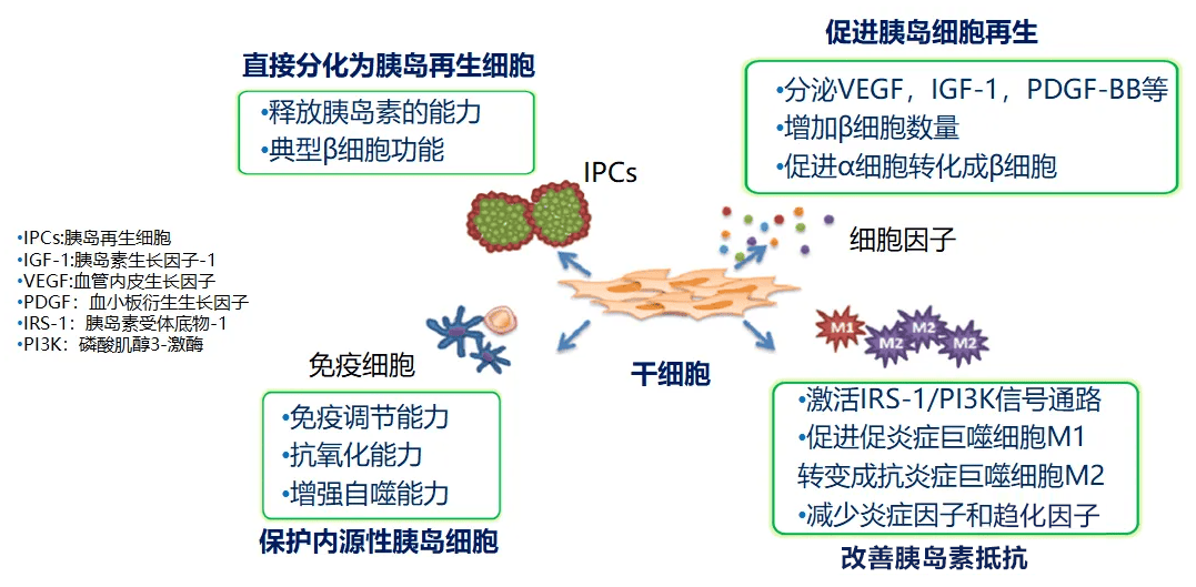 通过回输干细胞增加胰岛β细胞,即可有效调节血糖水平、胰岛素水平、改善胰岛功能和受控的胰岛素抵抗。
