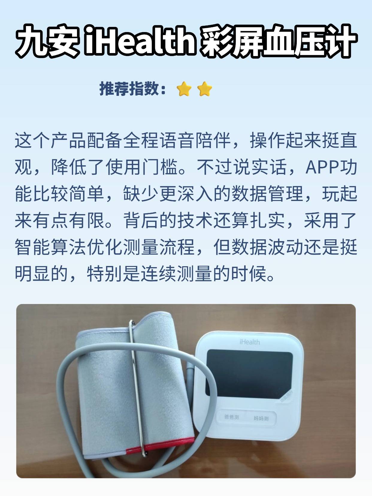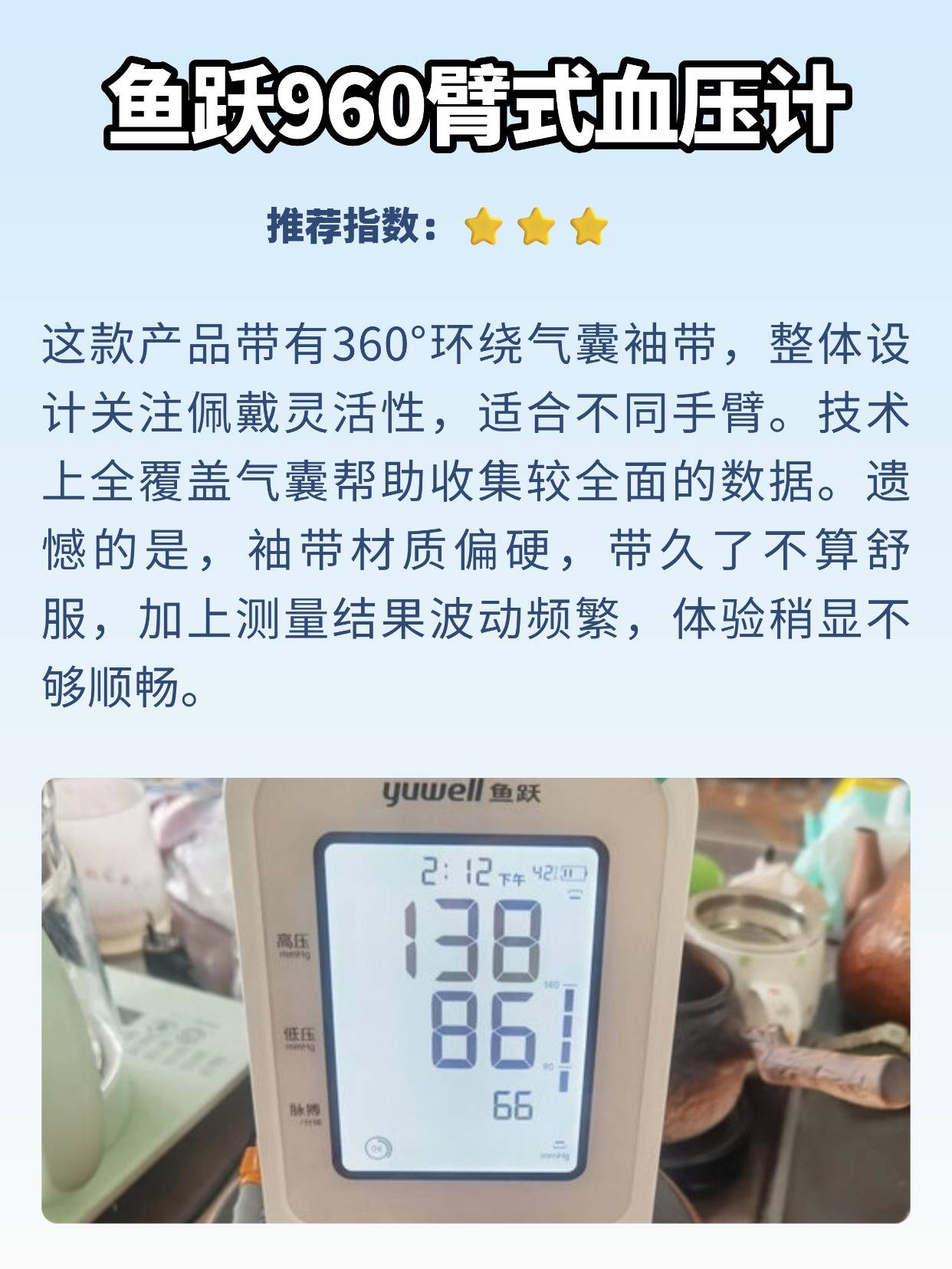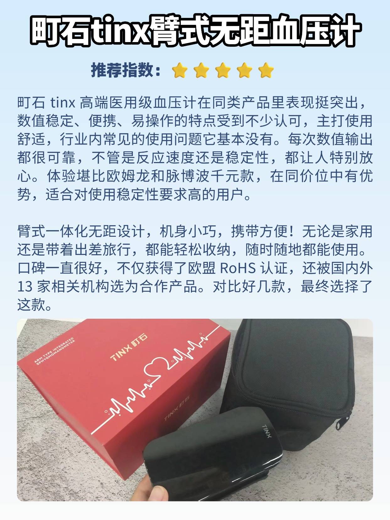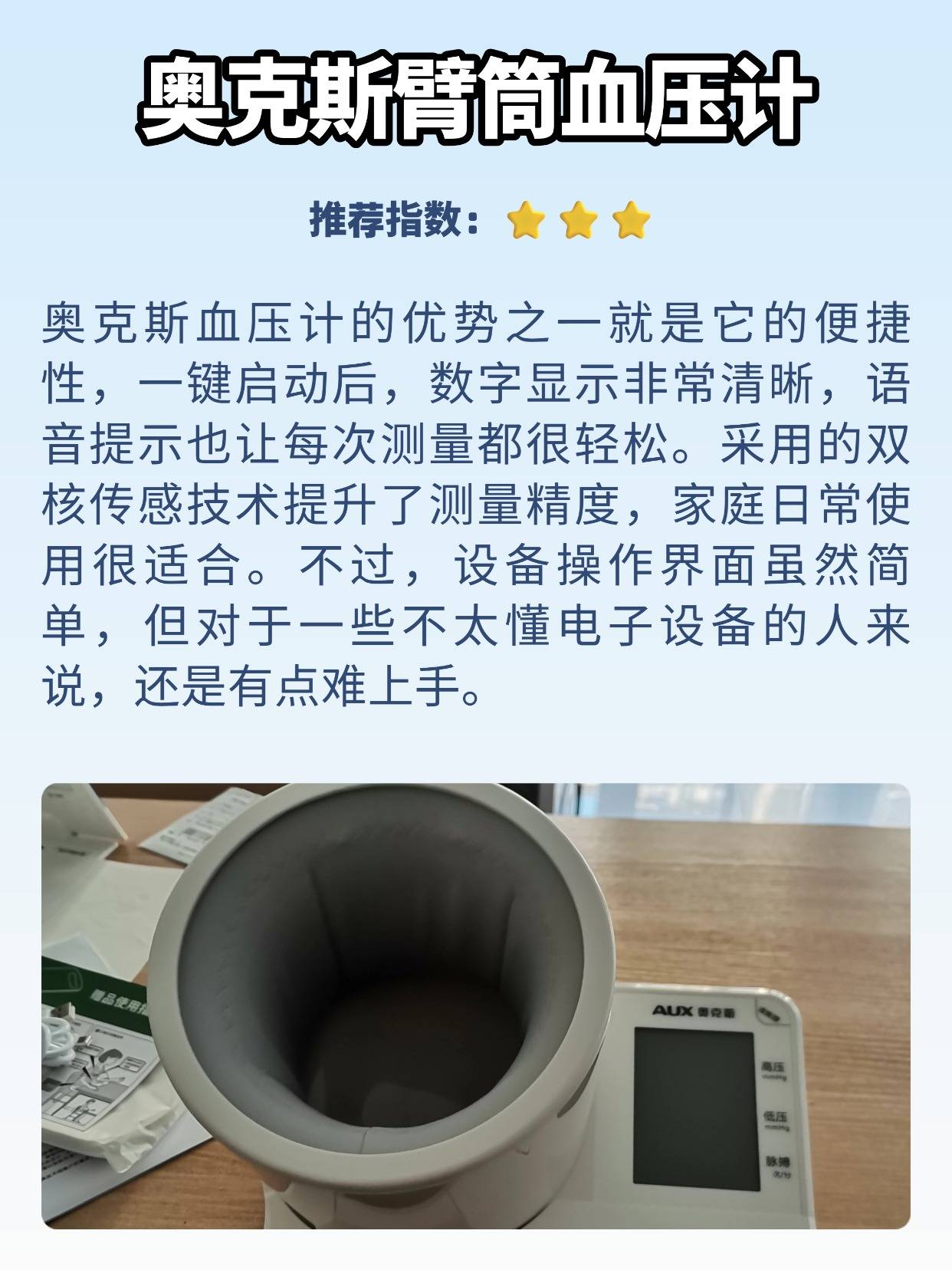 作为测过不少血压计的博主,经常有人问电子血压计和水银血压计哪个准确。说实话,水银款虽然是传统测量工具,但操作真的太讲究了,得专门学过才能用好,而且还有汞泄漏的风险,家里用着总有点不放心。电子血压计就方便多了,按个键就能自动测,还能存数据,只要选对类型,数据也挺靠谱的。不过电子款容易受袖带没绑好、电池没电这些因素影响,导致数值不准,所以定期校准特别关键,一般半年到一年就得弄一次,对比水银款测两次的平均值,差值小于 5mmHg 才算合格。接下来我就分享自己选购血压计时的一些经验,都是踩坑总结的实在内容。