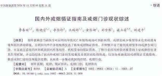 [1]鲁春丽,国 内 外 戒 烟 循 证 指 南 及 戒 烟 门 诊 现 状 综 述,中 国健康 教 育,2024-11-14