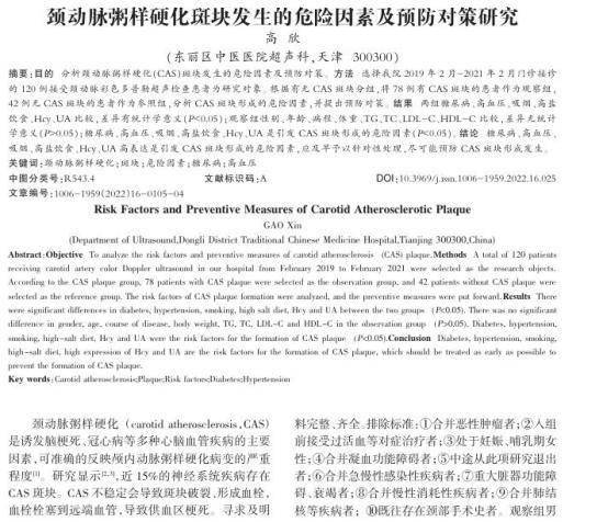 [1]高欣.颈动脉粥样硬化斑块发生的危险因素及预防对策研究[J].医学信息,2022