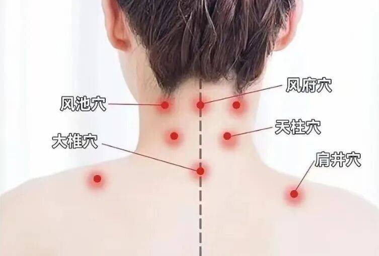 风池穴在后脑勺下方,两侧大筋旁的凹陷处。风池穴犹如为身体关上一扇迎风的“后门”,是祛风散寒、解表宣肺的第一要穴。