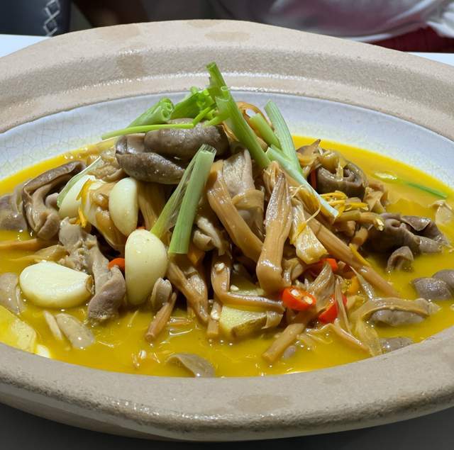 7. 焖煮至猪肚软烂,汤汁浓稠时,加入适量盐调味,大火收汁即可。