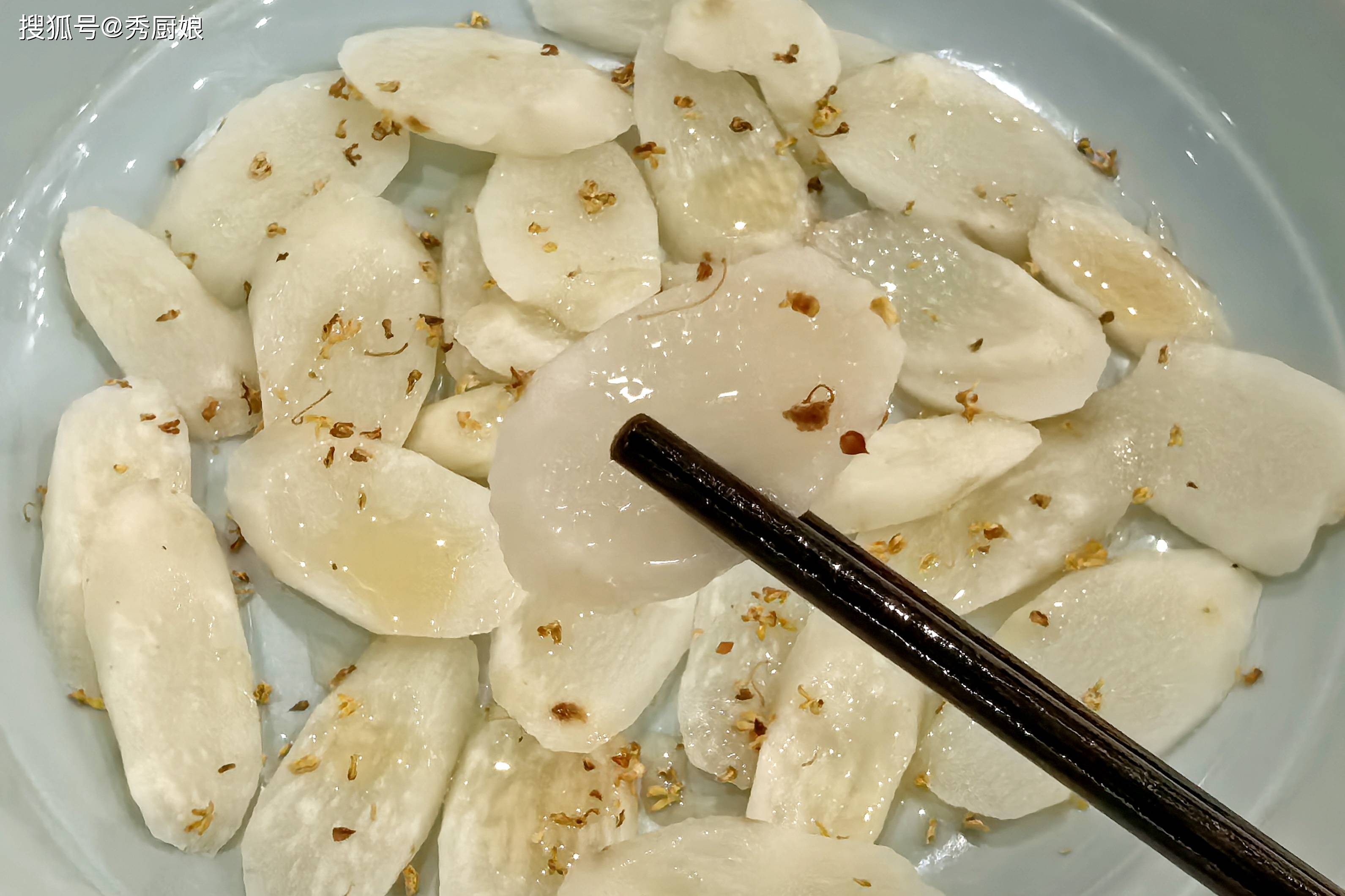 4. 讲究点的,可以用少许水和冰糖熬个糖浆,再拌入蜂蜜桂花淋上。