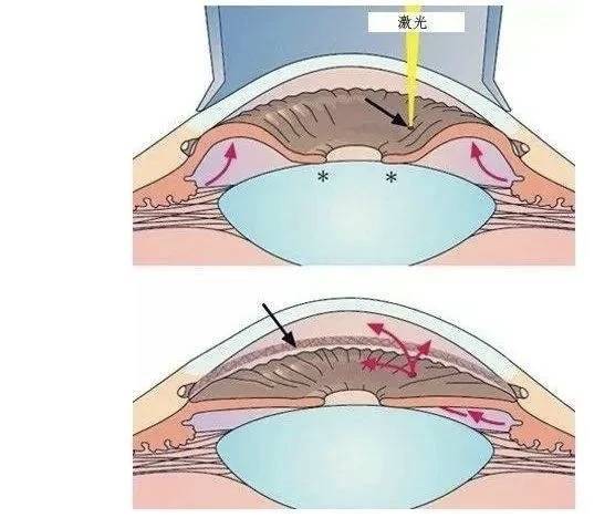 虹膜成形术:利用激光的热效应使虹膜组织轻微收缩,拓宽房角(房水流出的关键区域),改善房水流通条件。