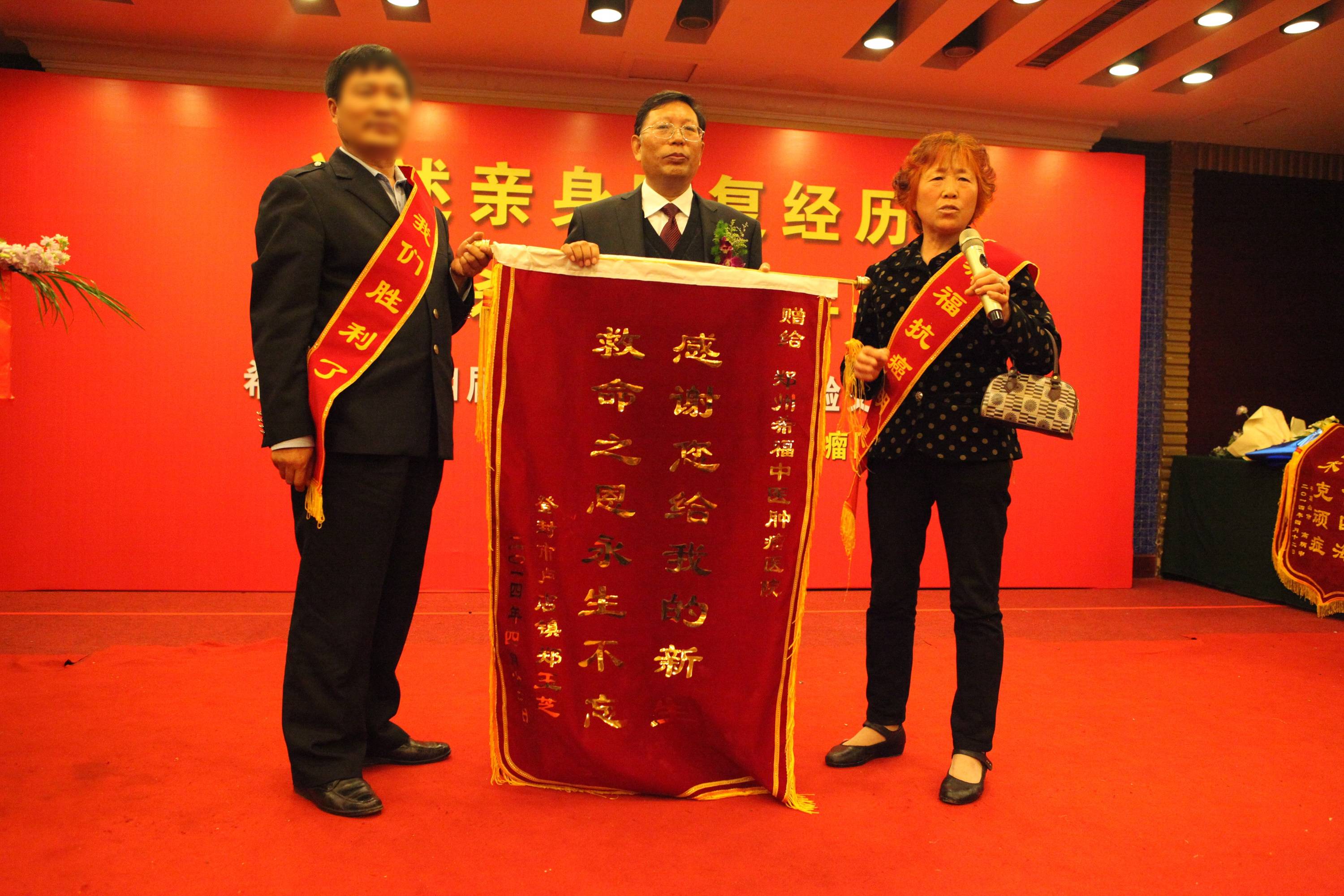 在2014年4月12日的“第四届百位抗癌明星经验交流大会”上,郑阿姨夫妇专门准备了锦旗,送给袁希福院长表达感谢。这份感激之情,不仅是对袁希福院长医术的认可,更是对生命重获新生的庆祝。到了2017年再复诊时,郑阿姨已经精神焕发、面色红润,与初诊时的状态判若两人。